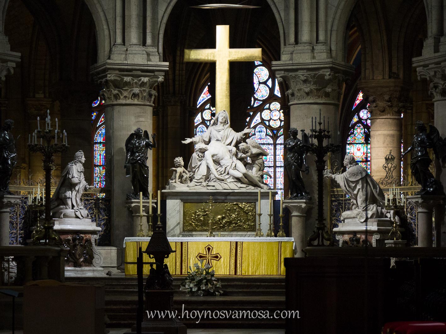 Situada en el altar mayor de la catedral de París, el «Descendimiento de la Cruz», obra del escultor francés Nicolás Coustou, se ha salvado milagrosamente del incendio de la catedral. Toda una alegría para quienes disfrutamos del arte.