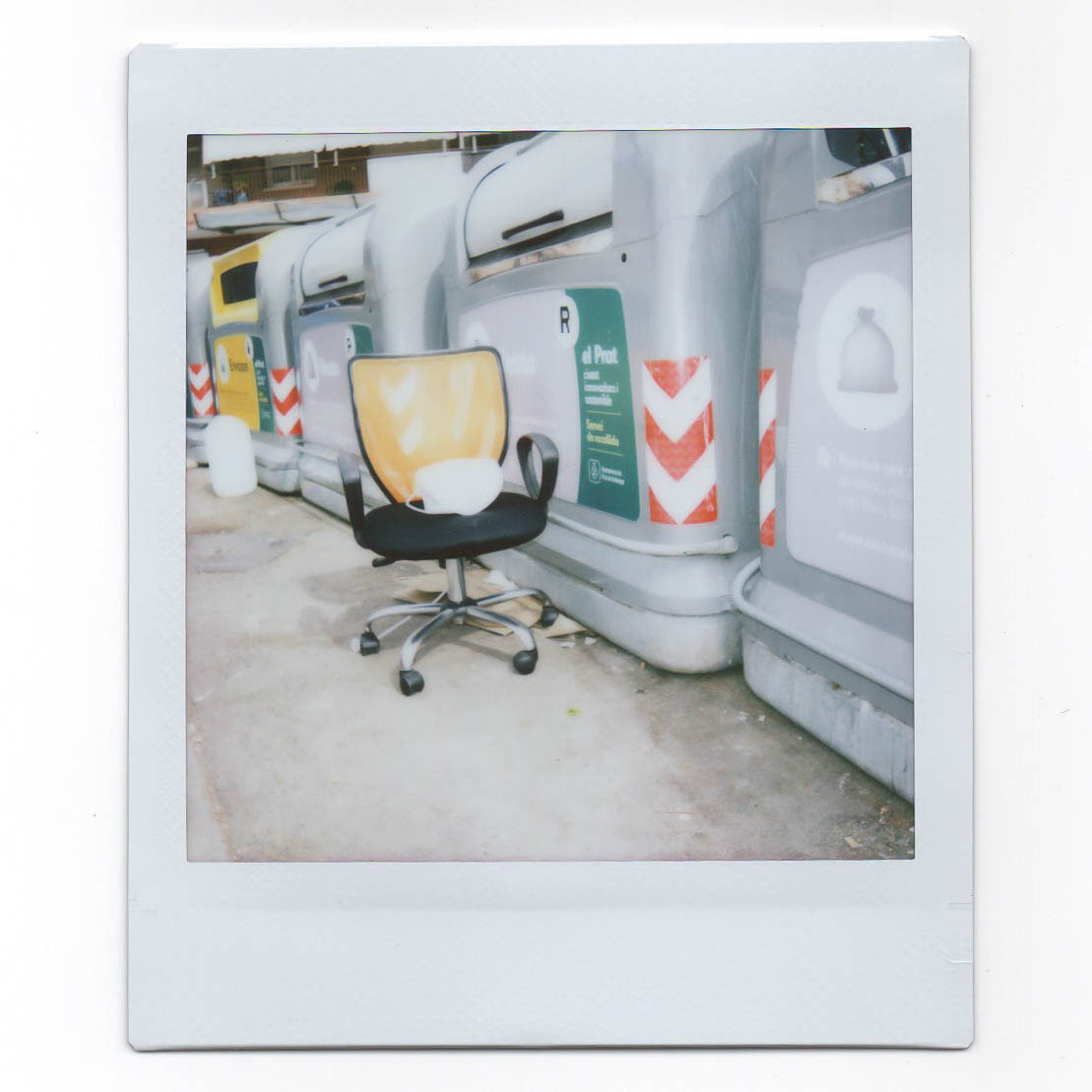 Abandonada de forma impune al lado de los contenedores de reciclaje encuentro la silla de la imagen. Como si de un corredor de la muerte se tratara se encuentra esperando ante las diversas inclemencias ambientales su pena capital sentenciada por un dueño que actúa en calidad de juez y parte.